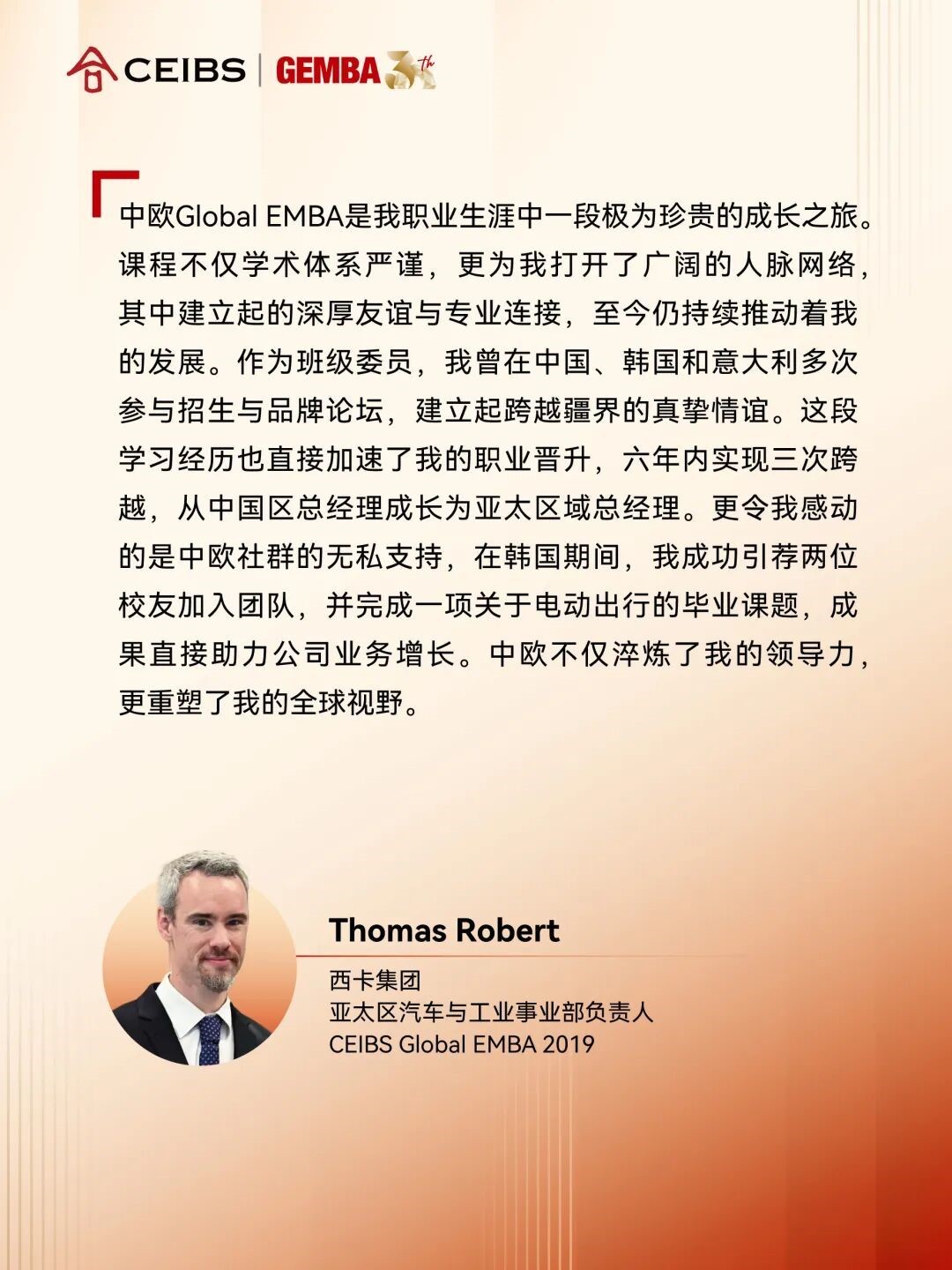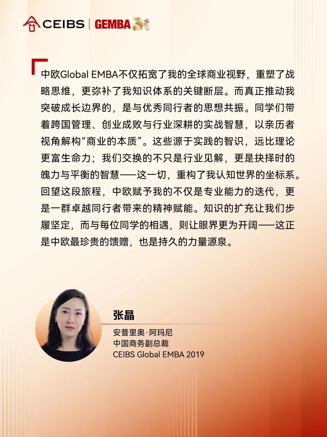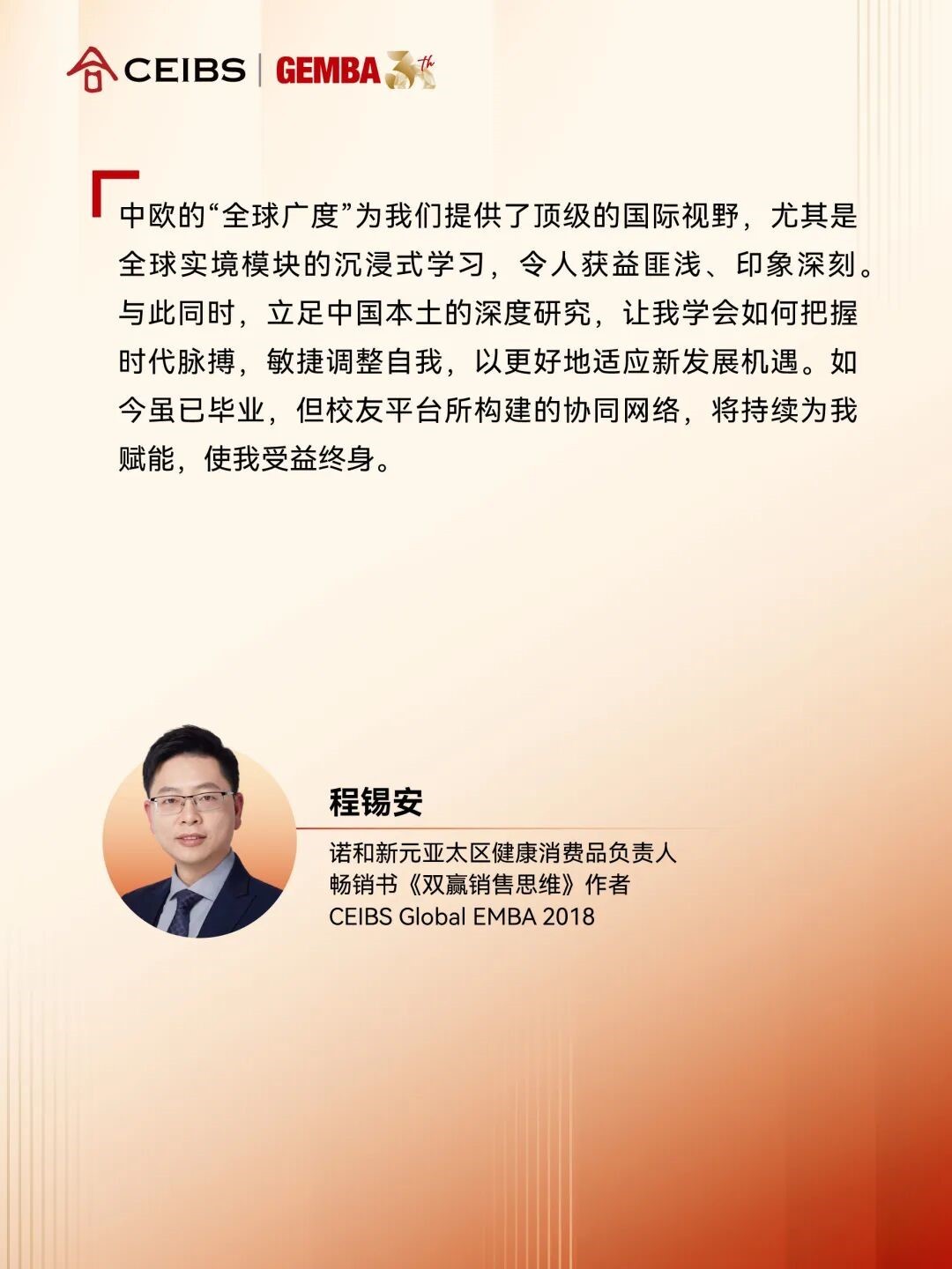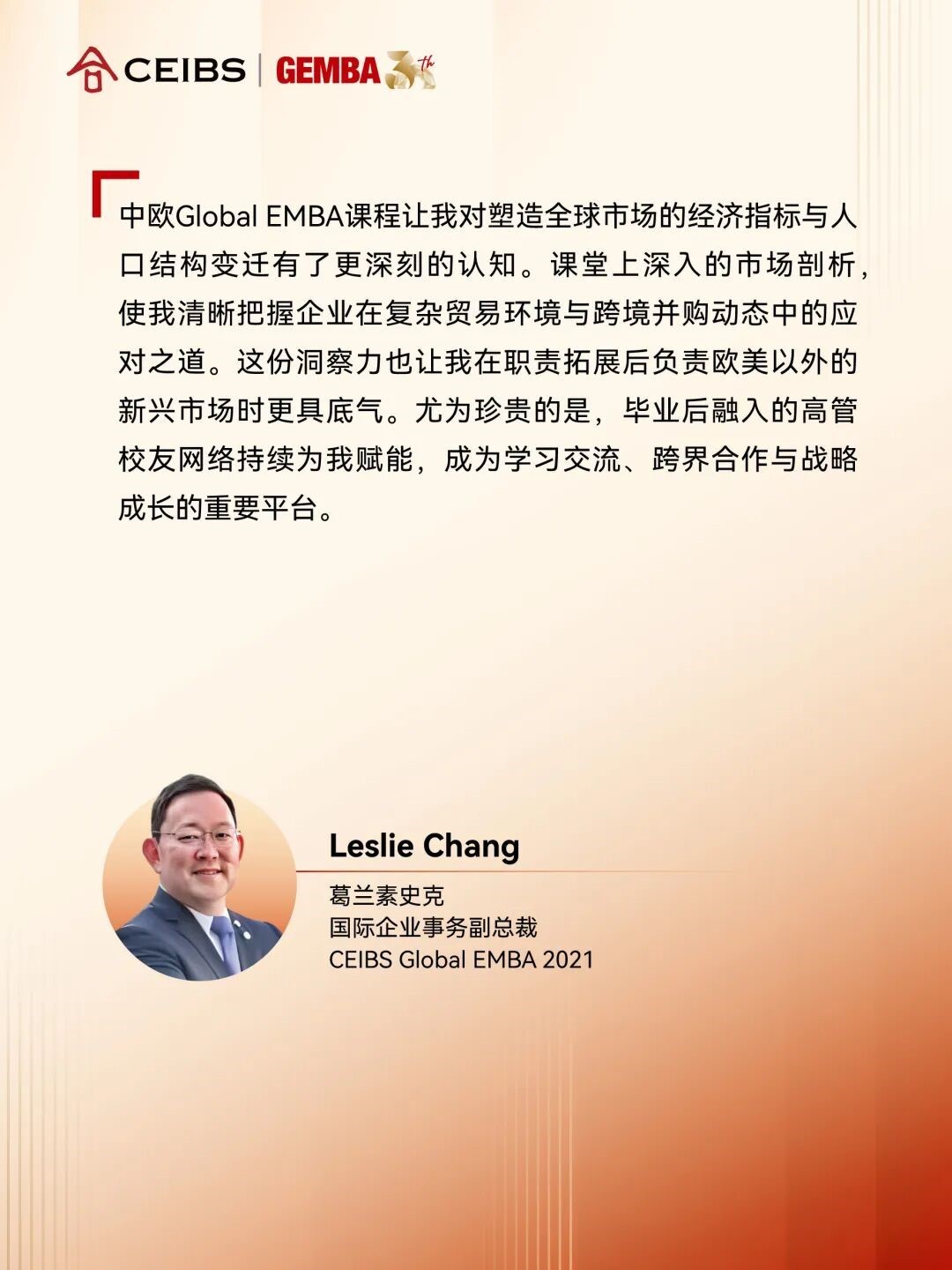 此次排名不仅凸显了中欧Global EMBA在全球管理教育界的领先地位,也树立起课程三十年继往开来、乘风破浪的一座里程碑。这既是对课程30年办学征程的圆满注脚,更是迈向未来的全新起点。展望未来,中欧Global EMBA课程将一如既往为全球领导者创造价值,不断深化中国与世界的对话交流,巩固全球管理教育第一阵营的领先者地位,推动中欧朝着成为全球最受尊敬的国际商学院这一愿景坚定迈进。